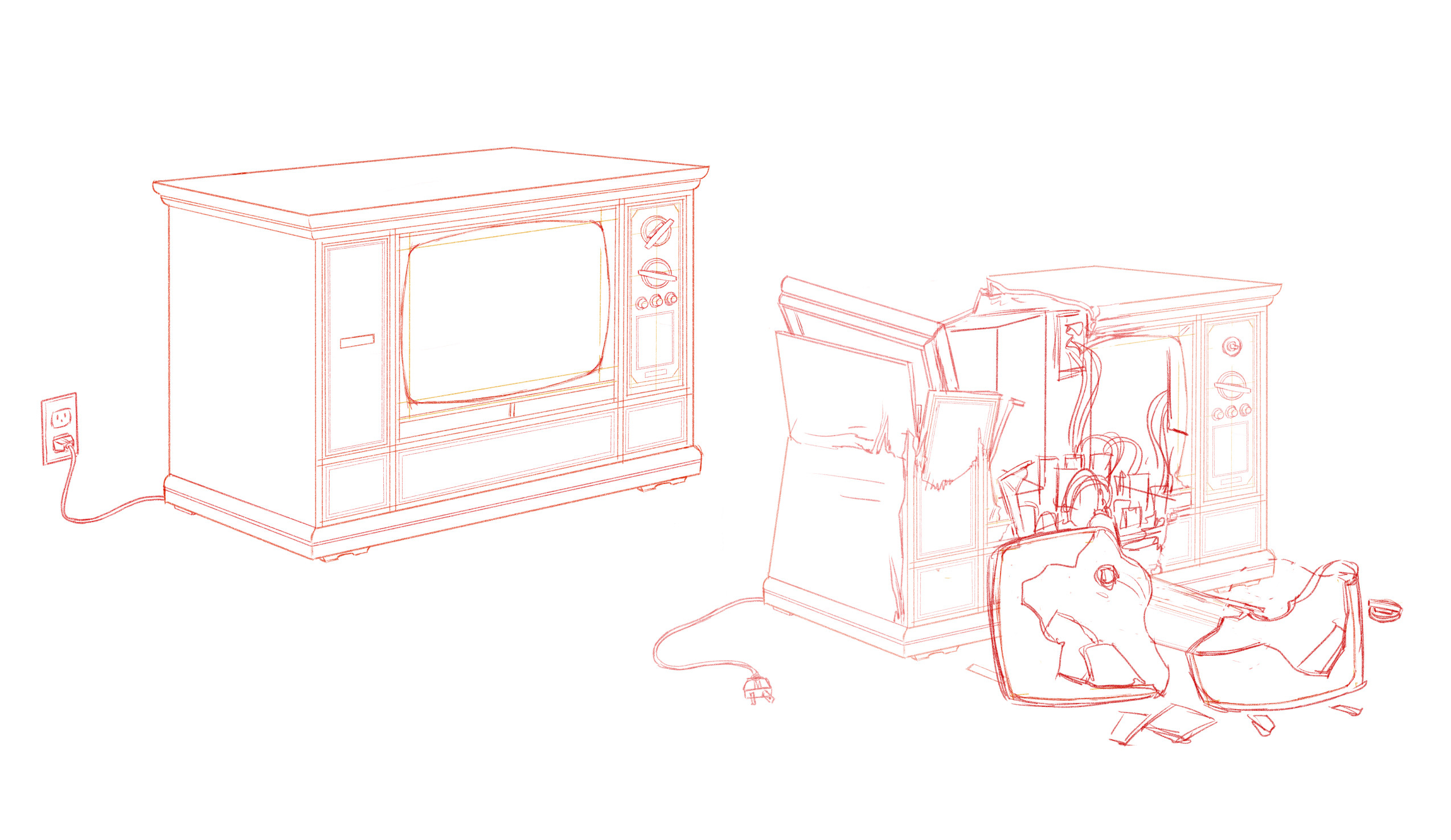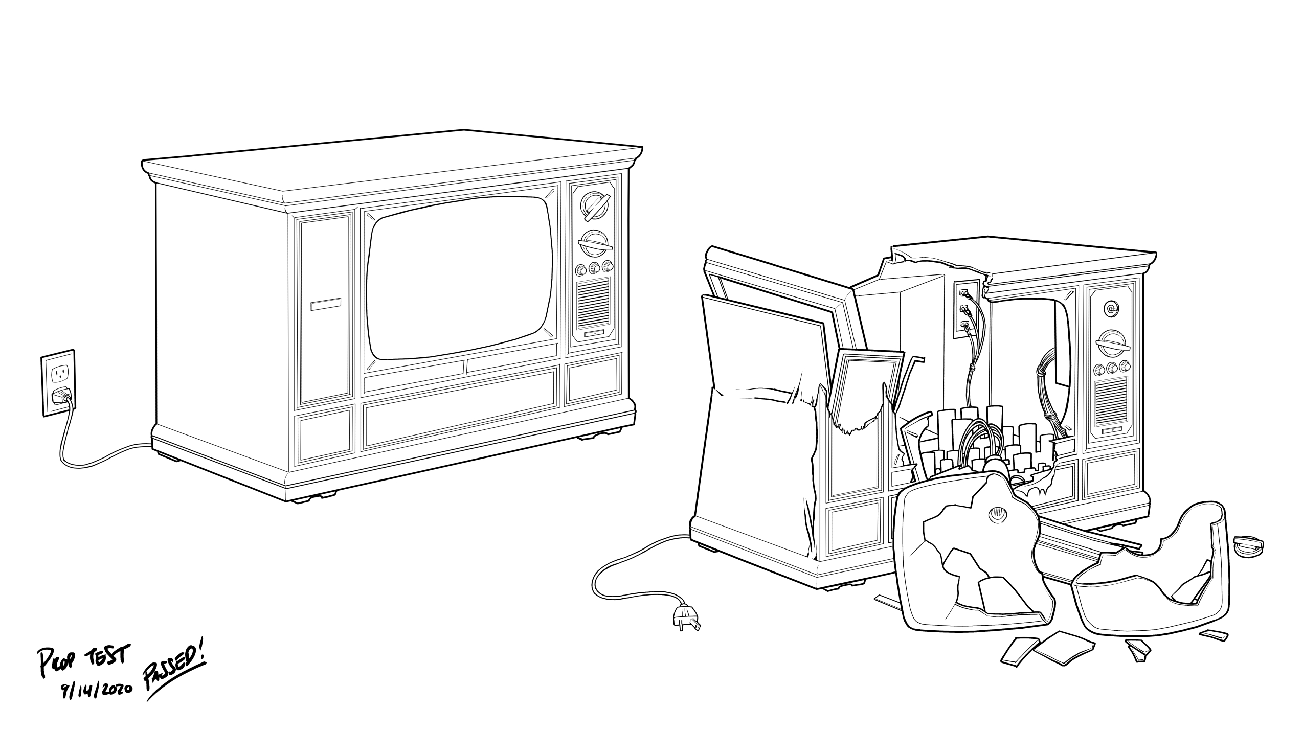 Here’s my test, the one sheet provided by the Director as a request for what he wanted, my roughs and the final inked cleanups done in clip studio.