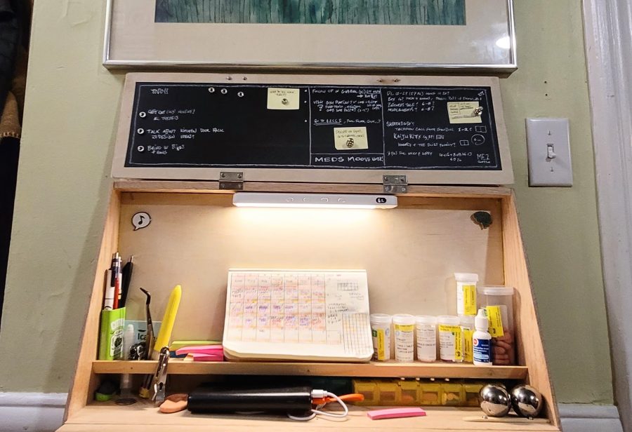 Some folks can use internal strategies for this kind of thing but also being Aphantasic, that approach has simply not worked for me. Not for lack of trying, but internal systems or even a day planer once out of site, is of no use. I need something fixed in my space, that can’t be missed or hidden. That has ONE JOB. To be a brain dump/planning/medical/task station.
