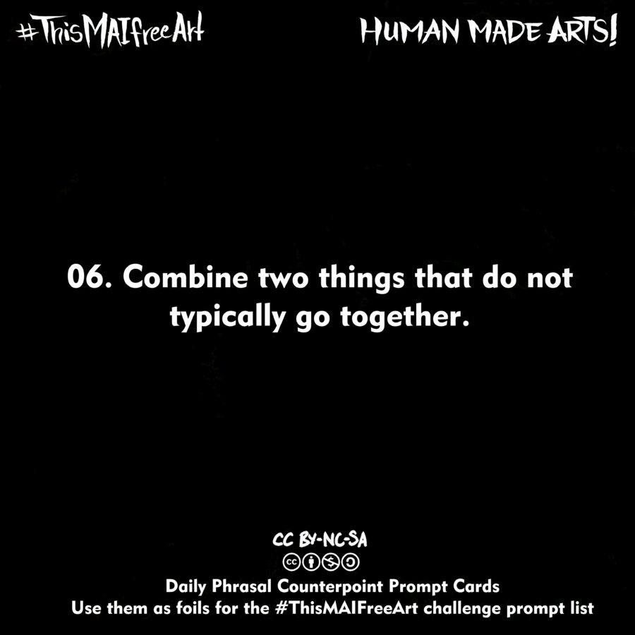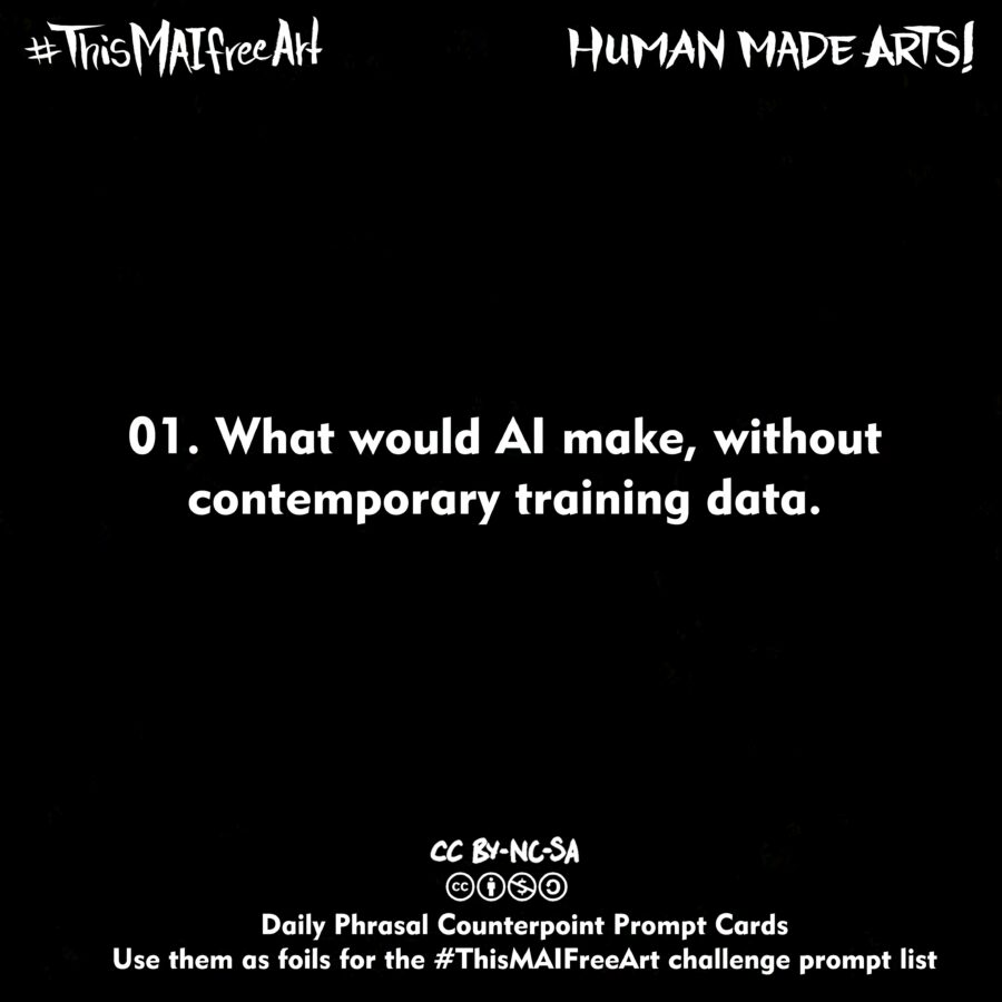 Look forward to seeing your art! Here’s the first prompt list, and the first 7 days of Daily Counter Prompts. The daily cards are inspired by Oblique Strategy cards, and can be used as foils against the daily prompts on the list or on their own.