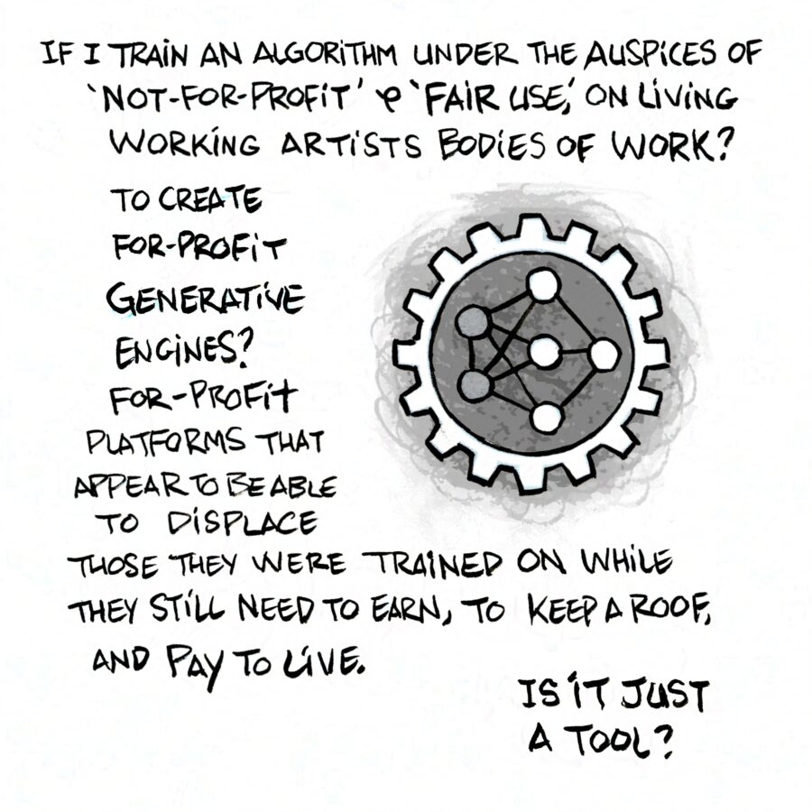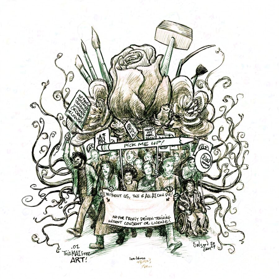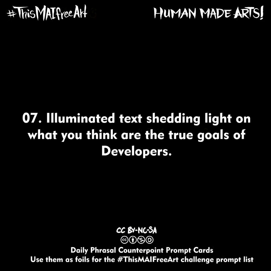 We want to free it from exploitative extractive generative AI capture and training without consent or licence! And encourage people’s human right to true self expression, rather than resorting to gamified prompting engines for a simulacrum of it.