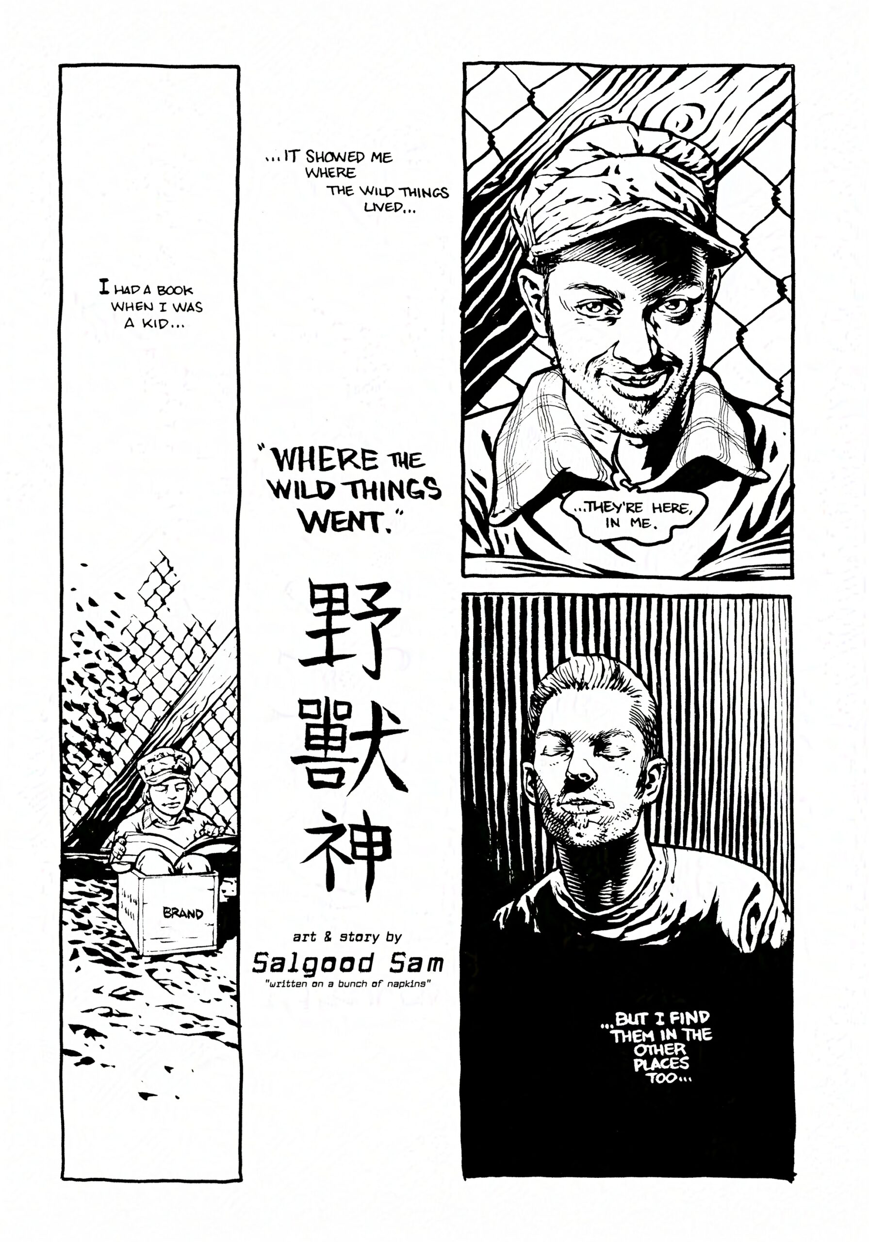 The image at the start was done some years later as a commission for a friend and is the cover for Revolver Zero. Returning to the theme, depicting a Sendak beast flying over Montreal ET style on a tricycle. I was flirting with learning Japanese at the time as I embarked on starting to learn French after moving to the city.
