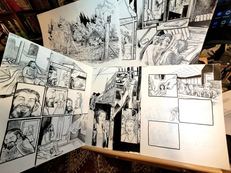 I don’t have a lot of time left after work for my own stuff now, but I do have lots of gas in the tanks at the end of the day creativity wise. Same experience I had working at Nelvana in the 90s. So still working away on personal stuff in my spare time, slower than ever but eh, that’s fine. Here’s a chunk of a wordless story I’ve been working on for Mind Engine recently.
