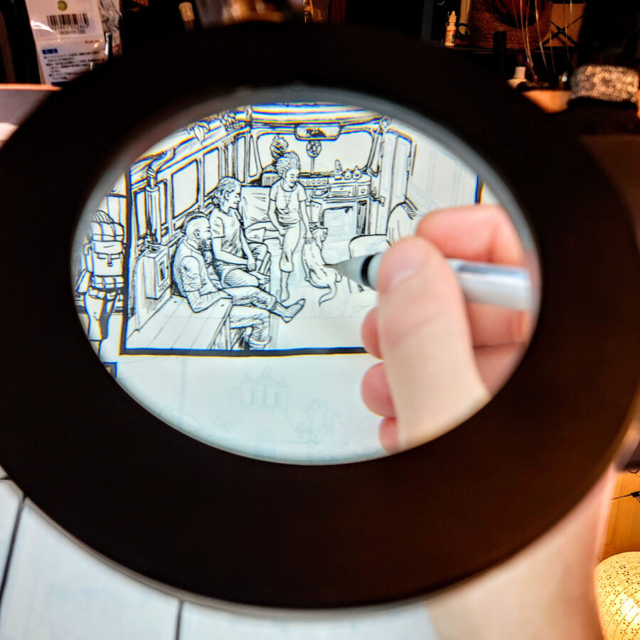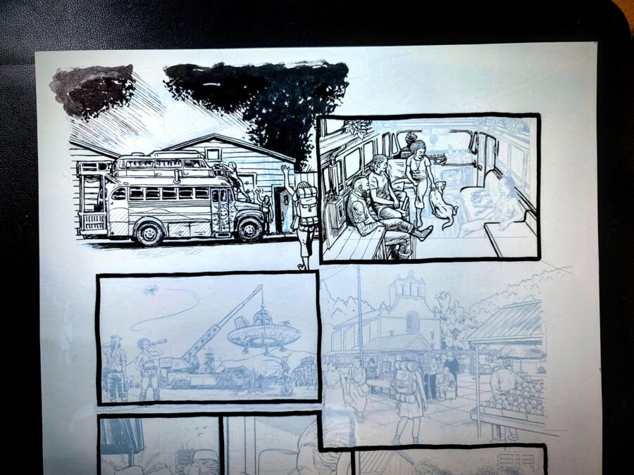 So you decide to use those first 10 as pencils and do the rest traditionally from this point on out! I’m going to do just inks with no tones for mind engine, but for this story will probably come back to it to add the tones, like I did for the first book once collected.